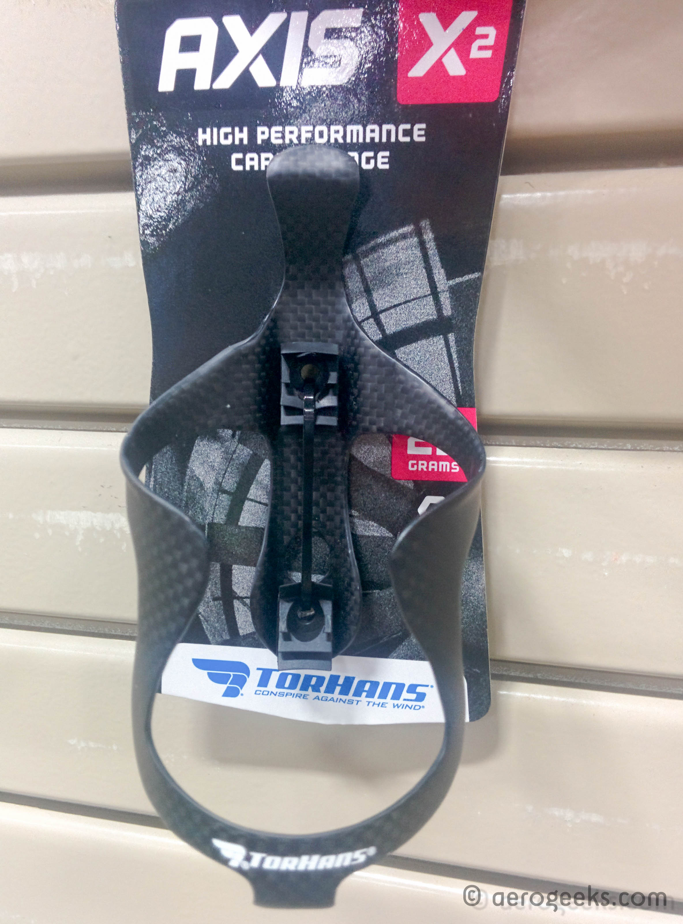 The bottle cages also have an interesting story, as well. The Axis X2 features directional rubber retention inserts with horizontal bottles in mind – the “teeth” flex downward, then “lock” into place and prevent unintentional ejection. The bottom retention tab is located on the arms of the cage, as opposed to the body, another great feature for a horizontal bottle setup. For those who like to zip-tie a single rear cage to their saddles, or anyone who has a habit of creating bottle-shaped road hazards, this could be the answer to our prayers. The Axis X2 weighs in at a scant 22g and is all carbon.