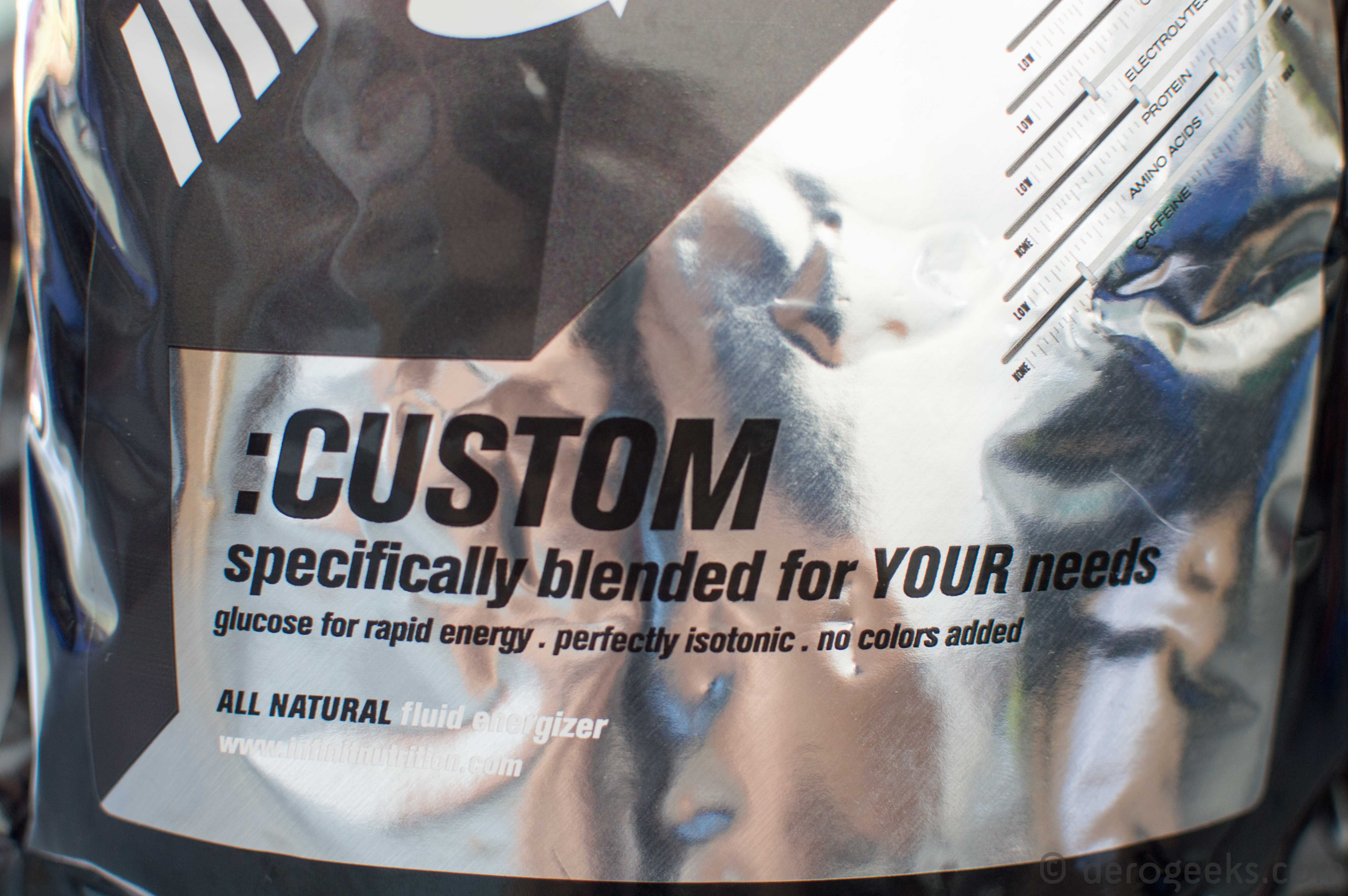 One of the other things you will notice is that Infinit is clear when mixed. No colors, no dyes, nothing that you can’t pronounce. The only thing, visually, that sets it apart from water is the slight haze from protein in the mixture, if you include it (we have). The flavors are natural. There are no sweeteners (besides the dextrose and maltose that are providing you carbs). And yes, Infinit is also Gluten-free.